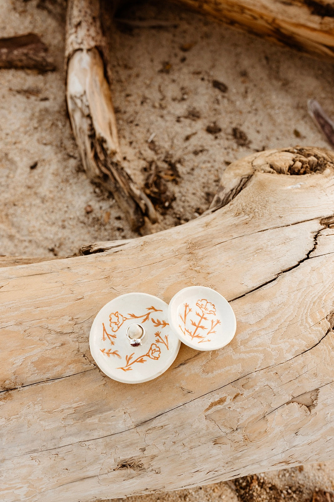 Rising Sun Jewelry boxes. White stacked together with a sandy backdrop.